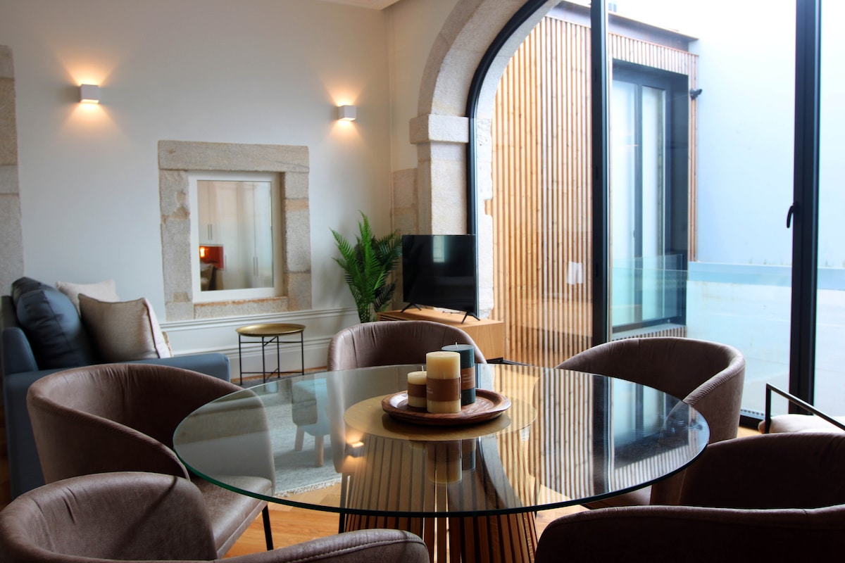 Apartamento de design na primeira linha do rio Douro!! Numa zona classificada como Património Mundial da UNESCO, na margem do Douro, o Art Douro nasce no edifício que outrora foi a antiga Destilaria de Álcool do Porto, originalmente construída no século XIX para produzir aguardente. A partir do Apartamento é possível perceber a história do Porto juntamente com uma incrível vista panorâmica que se estende desde a zona ribeirinha até ao centro histórico da cidade.