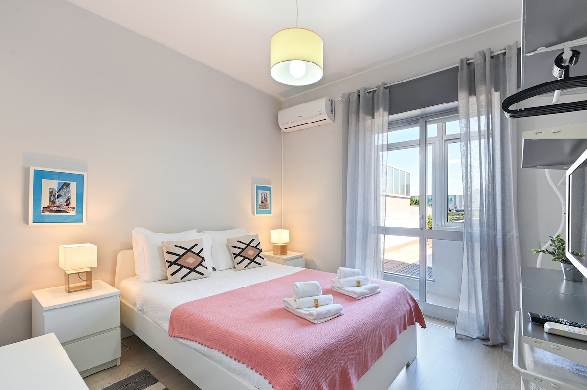 Enjoy the relaxing atmosphere inside this 1 bedroom new apartment with a very sunny terrace over Boavista. Practical and conveniently located 150m from Casa da Música – building and metro station. Free bikes and parking in garage included. Fast Wifi in all areas, equipped kitchen, A/C, washing machine, dishwasher, queen size bed and a comfortable sofa-bed. Relax at the private lounge area, prepare a meal or rest in this soundproof apartment, where you have all the comfort for a nice stay.