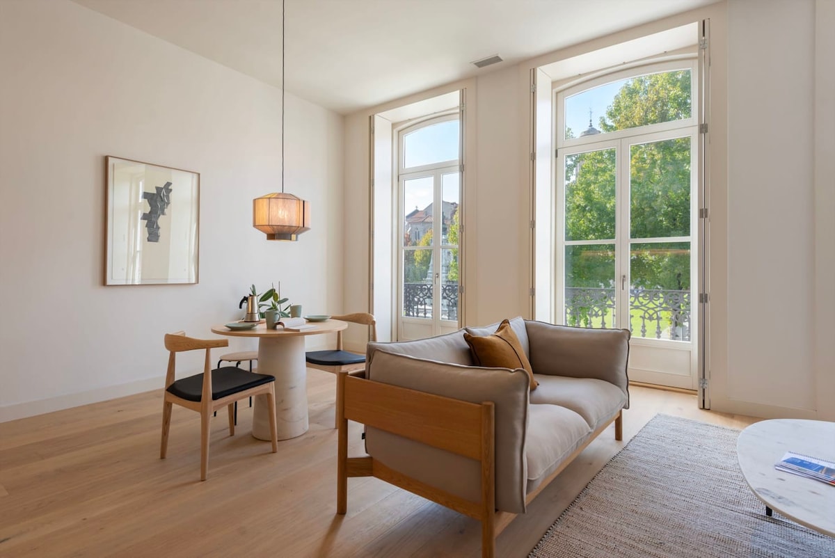 Stay in a stylish one bedroom apartment in a historic Porto building, just steps from Clérigos Tower and Cordoaria and Virtudes Gardens. Enjoy a balcony with sweeping views over the Douro River - perfect for relaxing after a day of exploring. Like many heritage buildings, there’s no lift and a unique 0.5 bathroom design (private toilet + open sink & shower), adding to its charm. Surrounded by cafés, shops and landmarks it’s the perfect setting for friends and couples to fall in love with Porto.