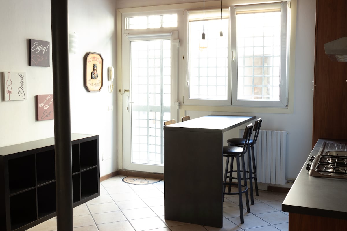 Visiting Verona is an “Experience”. The building is located on the left side of the Adige river, two steps’ walk from the Teatro Romano (ancient Roman Theatre still in activity) and from the ancient and quietest part of the town. The house is very cozy and offers all the comforts you need for our guests to have unforgettable moments in Verona.The house faces a courtyard (where kids can play) surrounded by Verona hills that gives to the apartment a cool atmosphere.