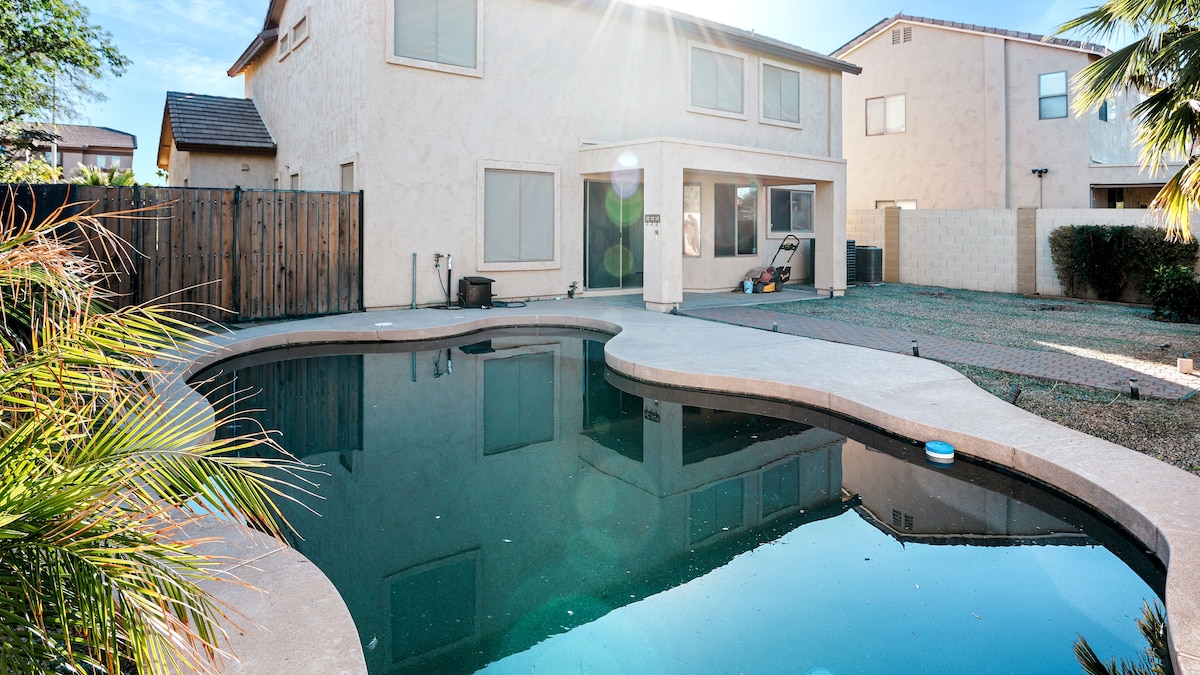 This is a beautiful newly built home. It is spacious with nearby amenities for over night stays. Located in a quiet neighborhood. Enjoy a relaxing stay, complete with a 70in flat screen tv, game consoles , Apple TV entertainment and in home bar all along following the no parties or large gatherings and events policy. Book now. It'll be your most relaxing stay in Casa Grande.