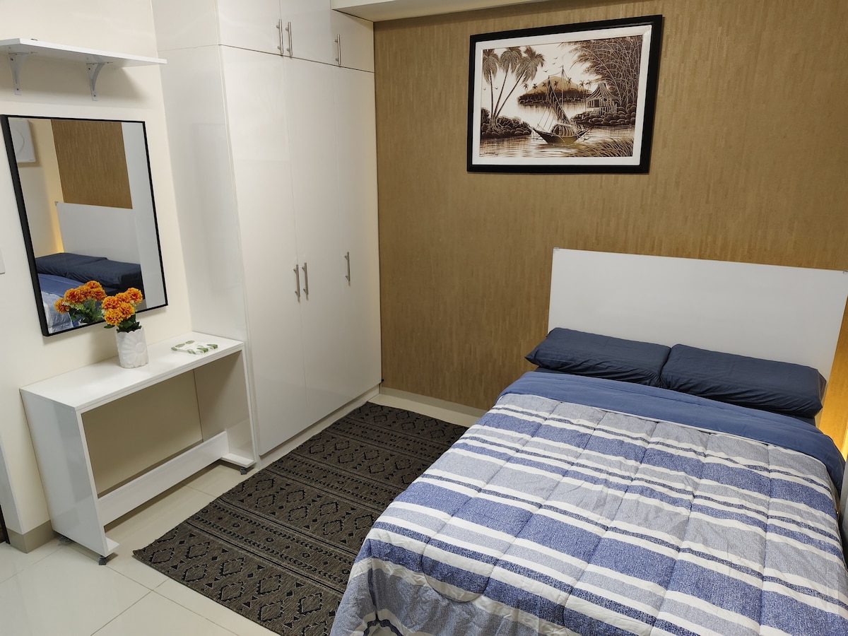Welcome to our centrally-located haven away from home! You can enjoy the flexibility to effortlessly navigate the city's highlights and experience the perfect blend of comfort and convenience during your stay. Our studio unit is fully-furnished, equipped with: >WiFi 200mbps >Air Conditioner >Full bed & pull out >Wardrobe >Work station >Dinning table >Fridge with freezer >Microwave >Smart tv >Rice Cooker >Water heater >Induction cooker >Basic cooking utensils & cutleries >Shower heater