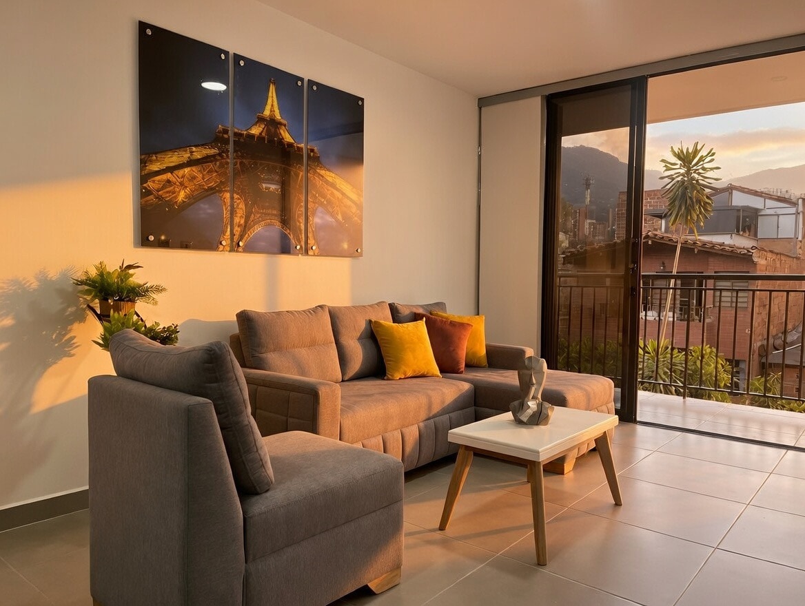 Escape to this luxurious 2-bedroom apartment featuring a wrap-around balcony with stunning valley views and some of the best interior design in Medellín. Nestled in the prestigious Energy Living building, enjoy top-tier amenities: a breathtaking infinity rooftop pool on the 22nd floor, a fully equipped gym, a relaxing steam bath, and the all-day Alquimista restaurant onsite. Just a short walk to Carulla supermarket and a vibrant mall brimming with delightful dining options!