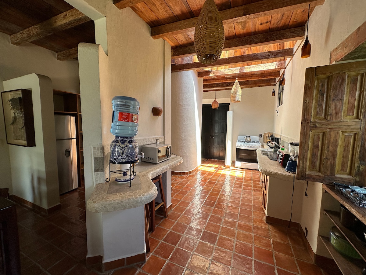 Cómodo y luminoso departamento con chimenea, ideal para disfrutar y descubrir San Cristóbal de las Casas. Ubicado en un barrio tradicional del centro, con fácil acceso a todo. Tragaluz y amplios ventanales que llenan el espacio de luz y calidez. Cuenta con cocina equipada, lavadora-secadora, escritorio e internet rápido, perfecto para trabajar o descansar en un entorno acogedor y auténtico.