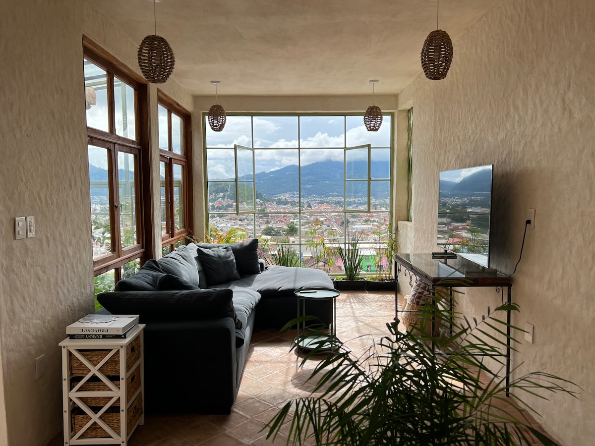 Casa Ocaso is the perfect house for you to enjoy the beauty of San Cristobal with friends or family. This beautiful 4 bed 4 bath home is located in the buzzing barrio of Guadalupe within walking distance of the most popular streets, restaurants, coffee shops, local bakeries and stores. Enjoy spectacular panoramic views and sunsets from our dreamy terrace or anywhere you are inside the house. Feel at home with comfy beds, a hot shower, cozy living room, good wifi and plenty of spaces to relax!