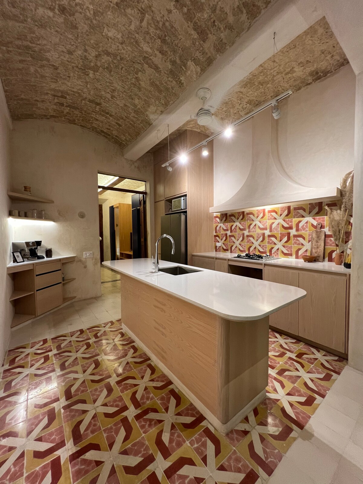 Spacious apartment inside colonial house, perfect for 2. Located east of downtown Mérida, near the ChemBech neighborhood, only a 20-minute walk from the main square. It welcomes travelers seeking calm and introspection. Unique in style and design, with luxury finishes, it guarantees privacy away from the hustle downtown. The apartment is completely private, on the lower level. It has a fully equipped kitchen and living room, a pool, a garden, a terrace, one king bedroom with a marble bathroom.