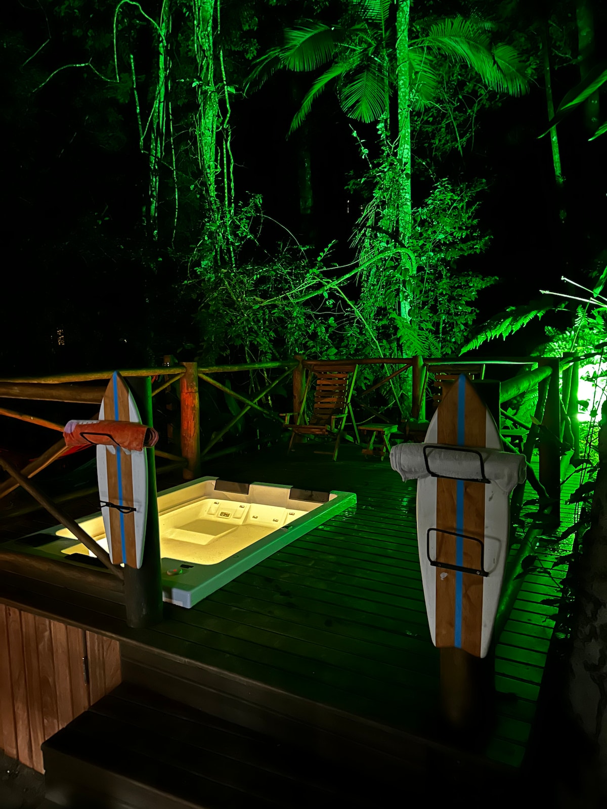 A Casa Mata Atlântica Maresias está localizada na praia de Maresias no Litoral Norte de São Paulo, à 10 minutos da praia, ela é perfeita para você desfrutar do litoral e se reconectar com a natureza, tendo o privilégio de aproveitar esse cenário único que é cercado das plantas nativas da Mata Atlântica. A casa possui uma sala integrada que acomoda perfeitamente até 3 pessoas, com todo serviço e enxoval completo para sua melhor comodidade e Jacuzzi privativa para você relaxar, no deck da casa.
