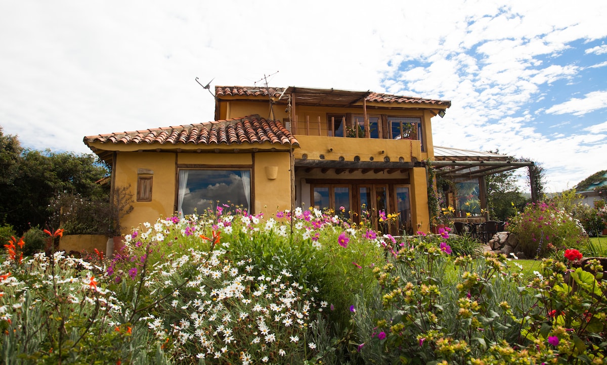 La casa tiene un bello diseño arquitectónico, es cómoda, acogedora, con espacios para el teletrabajo y está muy bien equipada. Es tibia y muy iluminada. Tiene bellos jardines y una vista maravillosa a las montañas. Ideal para amantes de la naturaleza. El clima es agradable y poco lluvioso. Tiene Wi-Fi, TV por cable y agua caliente. A 12 minutos del pueblo en carro y cerca de las principales atracciones de la Villa: Pozos azules, Granja de las avestruces, Infiernito y Parque de los Dinosaurios.