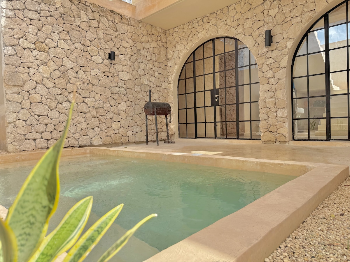 Bienvenidos a VILLA CAYETANA BACALAR Ideal para 2 o 4 personas! Este lugar tiene una ubicación estratégica, a 5 minutos caminando del centro de Bacalar y a una cuadra de la laguna! Restaurantes y bares cercanos, para recorrer Bacalar a pie o en bicicleta Casa privada completa, con todas las comodidades, alberca, asador, tv de 55”, cocina equipada, wifi, aire acondicionado y estacionamiento privado. La casa cuenta con 2 habitaciones (una de ellas subterránea, tipo búnker) y un baño completo.