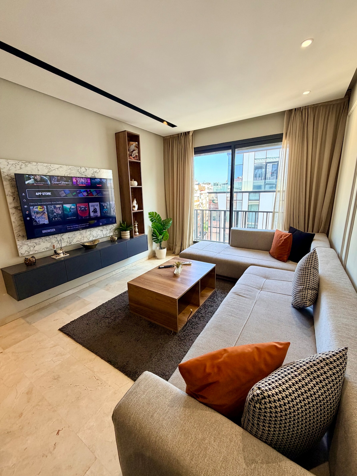 Enjoy a comfortable and stylish stay in the heart of Casablanca Finance City (CFC). This modern one-bed apartment offers beautiful open views, plenty of natural light, and a calm atmosphere above the city The apartment features a spacious bedroom with a comfortable bed and quality linens, a bright living area perfect for relaxing or working, and a fully equipped kitchen for short or extended stays. Large windows showcase panoramic city views, making mornings and evenings especially enjoyable