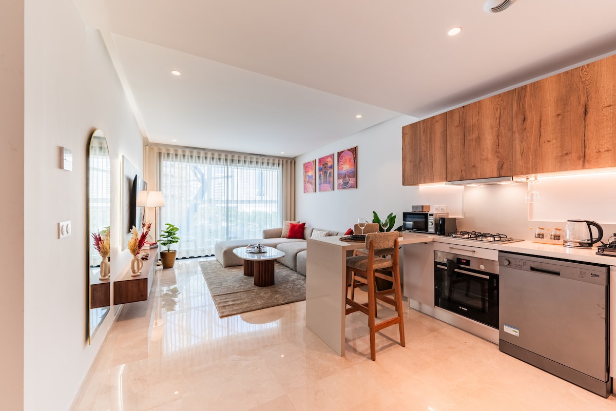 Stay in an elegant apartment ideally located in the heart of Casablanca Finance City (CFC), above AERIA Mall. Designed for comfort and productivity, the apartment features a bright, thoughtfully furnished space, a fully equipped kitchen, and a balcony with an open view—perfect for unwinding after a workday. Enjoy a calm, modern, and secure environment, just steps away from corporate offices, restaurants, and everyday amenities.