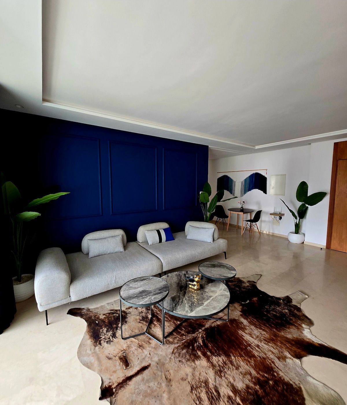 Casa Skyline appartement luxueux situé au 10ème étage Residece Louise 2 à Casa Finance City offre une expérience de vie exclusive avec une vue panoramique , notamment sur le parc Casa Anfa. L'intérieur est spacieux et lumineux, avec un salon ensoleillé doté de grandes fenêtres, un design moderne et des meubles haut de gamme. L'appartement est conçu pour le confort et le bien-être, offrant une ambiance sereine et calme en contraste avec l'énergie de la ville.