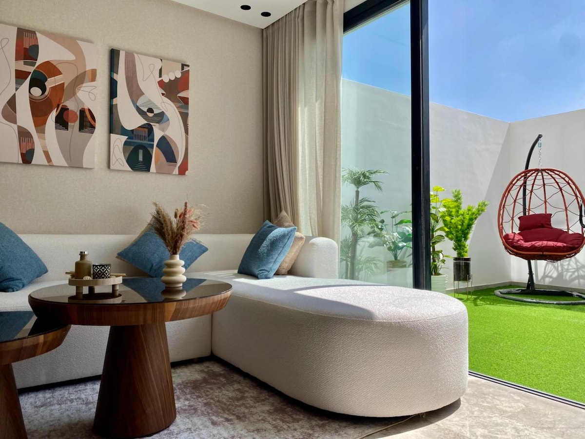 ✨ Elegant retreat in the heart of Casablanca, right across from Casa Port train station. This bright and spacious 83m² apartment offers all the comfort you need for a perfect stay and can comfortably accommodate up to 5 guests. It features 2 peaceful bedrooms with garden views, a home cinema-style living room (75" TV), a balcony overlooking the Hassan II Mosque, a fully equipped kitchen, and a dedicated workspace. Perfect for relaxing moments, whether for a weekend or an extended stay 🌇🌿