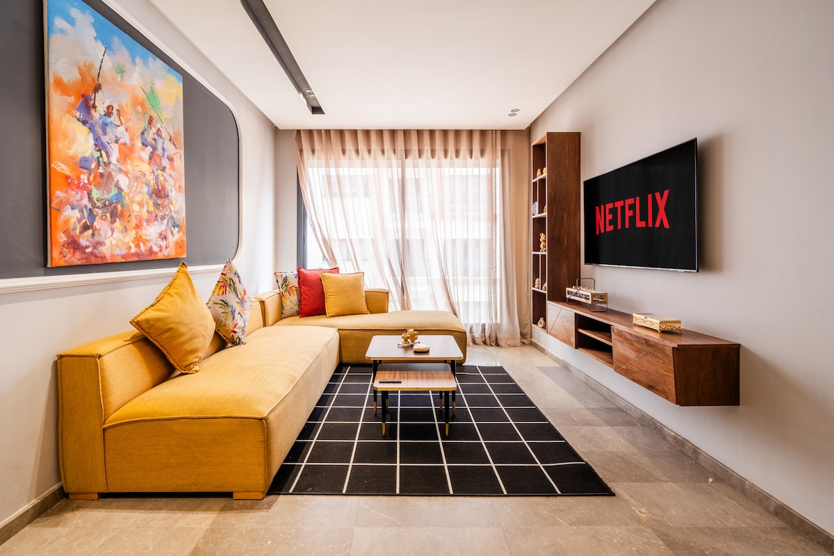 Cet appartement luxueux de deux chambres est situé dans l'un des quartiers les plus prestigieux de Casablanca. Dès que vous entrez, vous êtes accueilli par un vaste espace de vie ouvert, baigné de lumière naturelle grâce aux grandes baies vitrées offrant une vue sur la ruelle calme du triangle d'or. Le salon est aménagé de manière élégante avec des meubles haut de gamme et des finitions raffinées. Il est doté d'un grand canapé confortable, de chaises design et d'une télévision à écran plat.