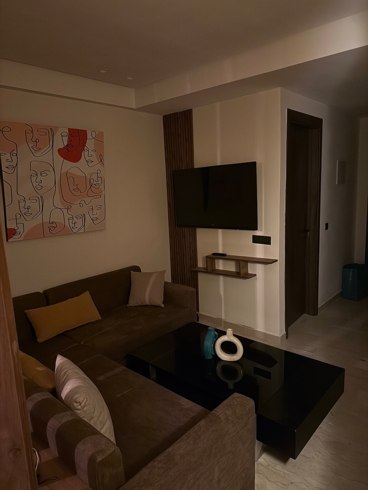 Unique modern accommodation in Casa Finance City, in front of "Anfa Club" tram station. The most beautiful area of the city, 5 minutes from Maarif and 20 minutes from Casablanca International Airport (CMN), in a high-end residence with parking, rooftop pool, gym and SPA (Hammam and Sauna). The apartment consists of: - 2 Large bedroom - 2 bathroom - Fully equipped kitchen - SMART TV with IPTV (Sports, Sky, international channels), Netflix, Prime Video - High-speed Wi-Fi