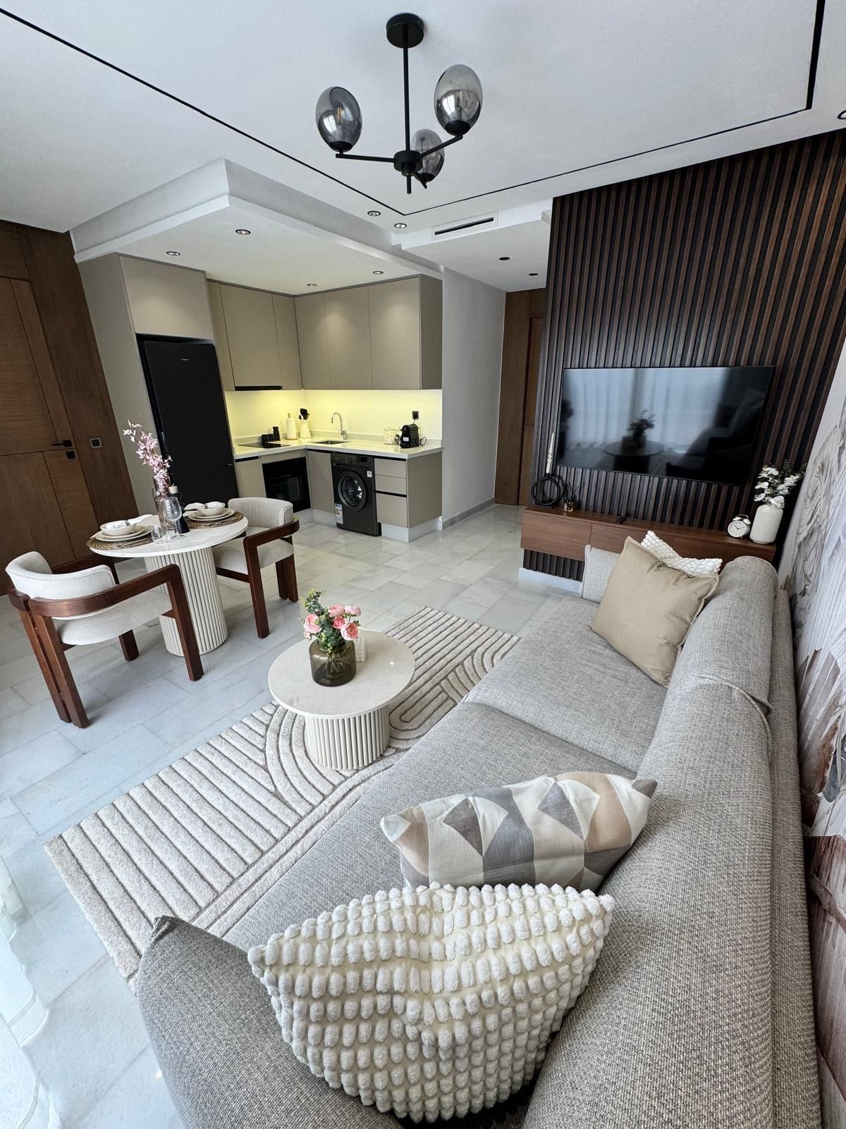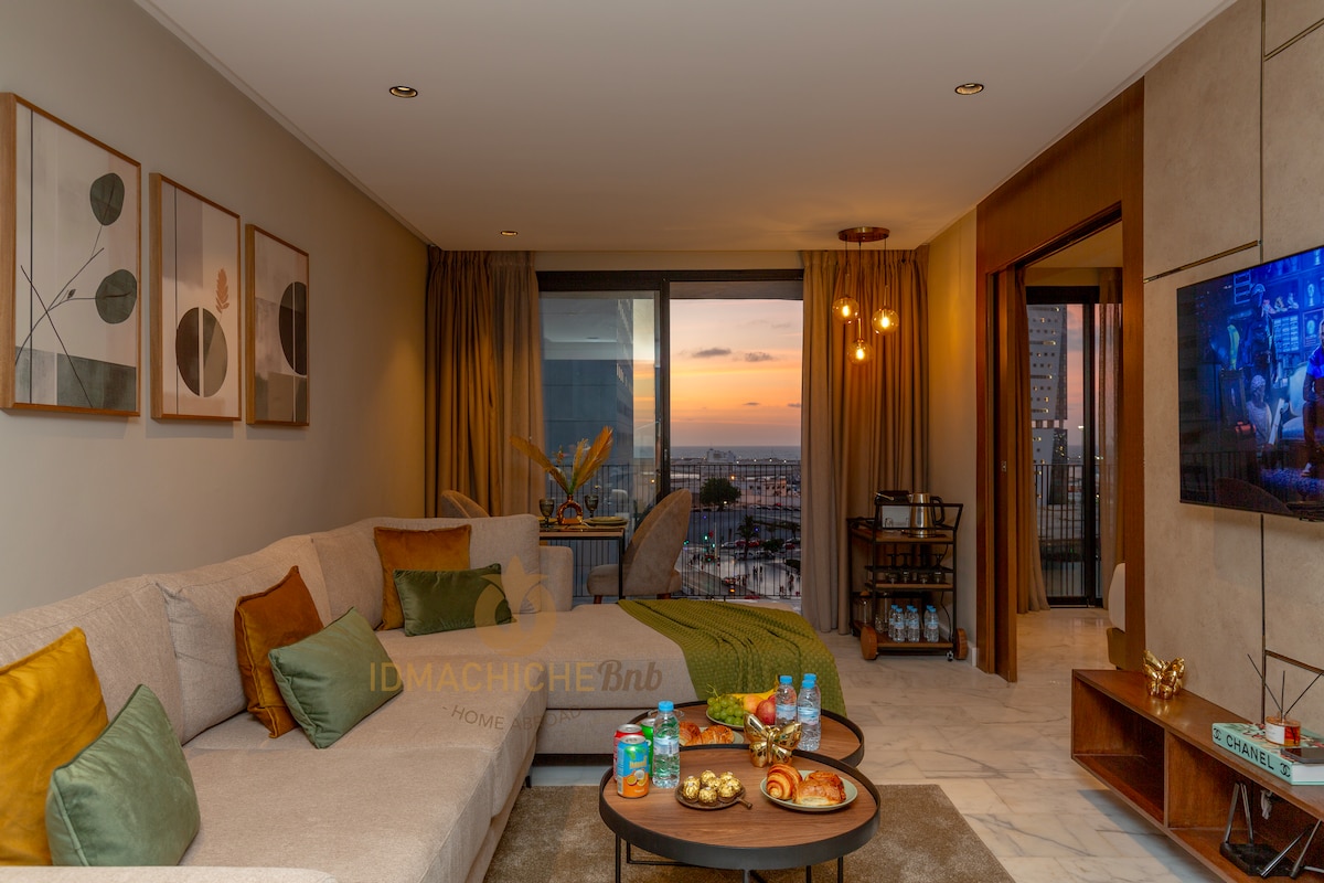 Perla 403 💎 , un havre de paix où l'élégance d'une résidence moderne s'allie au confort des hôtels 5* en plein cœur de Casablanca ! Relaxez-vous dans un salon spacieux au design moderne, équipé d'une Smart TV 55’ avec Netflix et IPTV pour des soirées de détente absolue. La chambre, véritable nid douillet, vous promet des nuits paisibles et réparatrices ☁️ Depuis votre balcon privé, admirez les splendides couchers de soleil sur la ville, rendant chaque moment de votre séjour inoubliable ! ✨