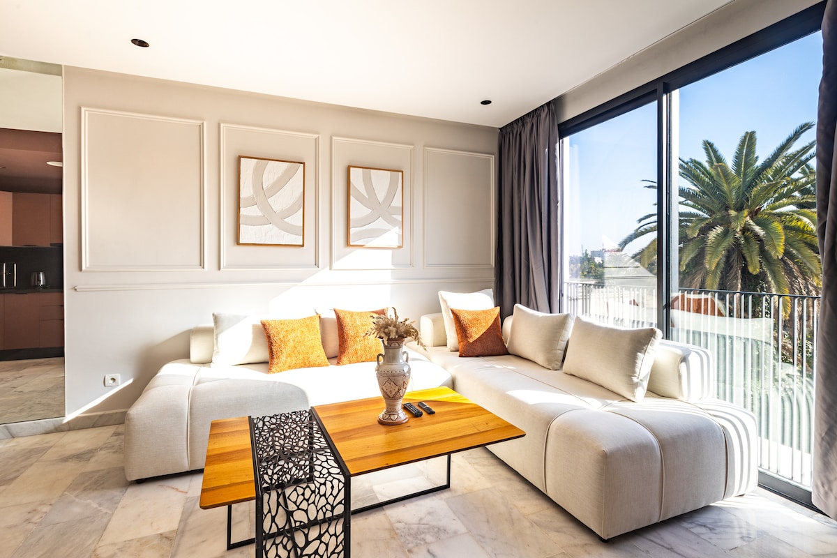 Experience the perfect blend of luxury and comfort in this stylish studio located in the heart of Casablanca. Ideal for both business travelers and vacationers, this modern space features a fully equipped kitchen, a dedicated workspace, and a private terrace for your morning coffee or evening relaxation. Unwind in the spacious living area with floor-to-ceiling windows that flood the space with natural light, or take advantage of the on-site gym to stay active during your stay.