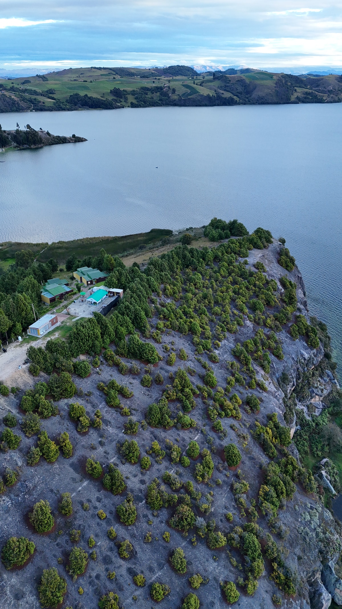 La Cabaña se encuentra sobre la punta de una montaña con la vista mas hermosa hacia la Laguna de Tota, todos los amantes de la naturaleza, la calma y los animales son bienvenidos. Es una cabaña hecha con mucho amor y cada detalle ha sido cuidado para el bienestar de quien la habite. El lago de Tota es el más grande de Colombia con una superficie de 85Km2, temperaturas de entre 0 y 12 y ubicada a una altitud de 3.115MtsSNM. Es un lago milenario que merece tu respeto y cuidado.