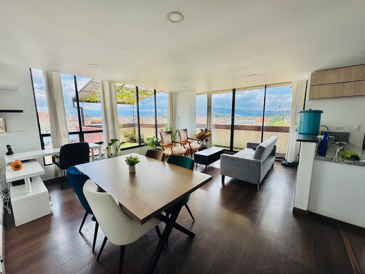 This brand-new apartment with luxury finishes in the heart of Sogamoso is perfect for families looking for comfort, style, and convenience. Enjoy a spacious private terrace with a BBQ — ideal for family meals and relaxing moments together while taking in the beautiful views. Plus, you’ll be just 20 minutes from the stunning Laguna de Tota. The reservation includes complimentary overnight parking in a private parking lot located very close to the property.