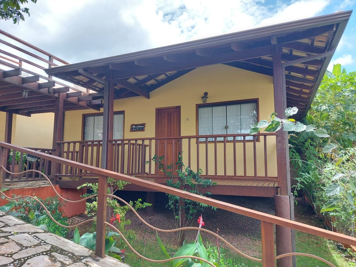 A apenas 1 km da Avenida Principal, um refúgio silencioso em meio à natureza, com uma vista deslumbrante! A casa oferece conforto e aconchego, com dois quartos, cama queen e ar condicionado silencioso. A suíte conta com TV Smart. Sala integrada à cozinha e deck com mesa de jantar, rede e Ofurô. Relaxe na rede suspensa e aproveite a privacidade. No mesmo lote esta a Casa Graça, ambas oferecem privacidade, estacionamento exclusivo e cerrado como jardim.