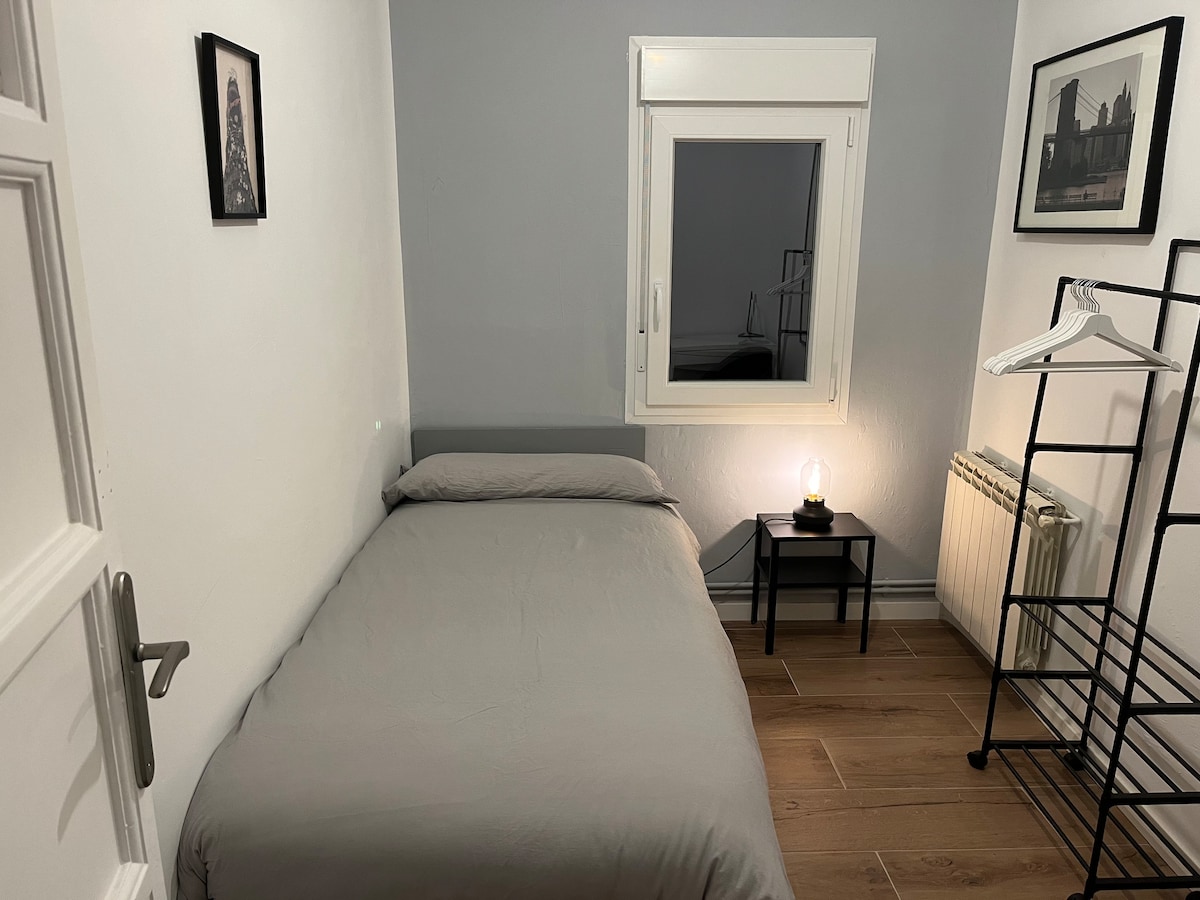 Independent room on the ground floor with an exterior window at street level. It has a kitchenette and a private bathroom. This space is not shared. The entrance and exit are shared in the hall. This is not a tourist rental. It is rented temporarily for work, teaching, or leisure purposes. Conveniently located in a well-connected area, close to supermarkets, restaurants, and shops. It is close to museums, El Buen Retiro Park, Atocha Station, and the 203 Airport Express bus.