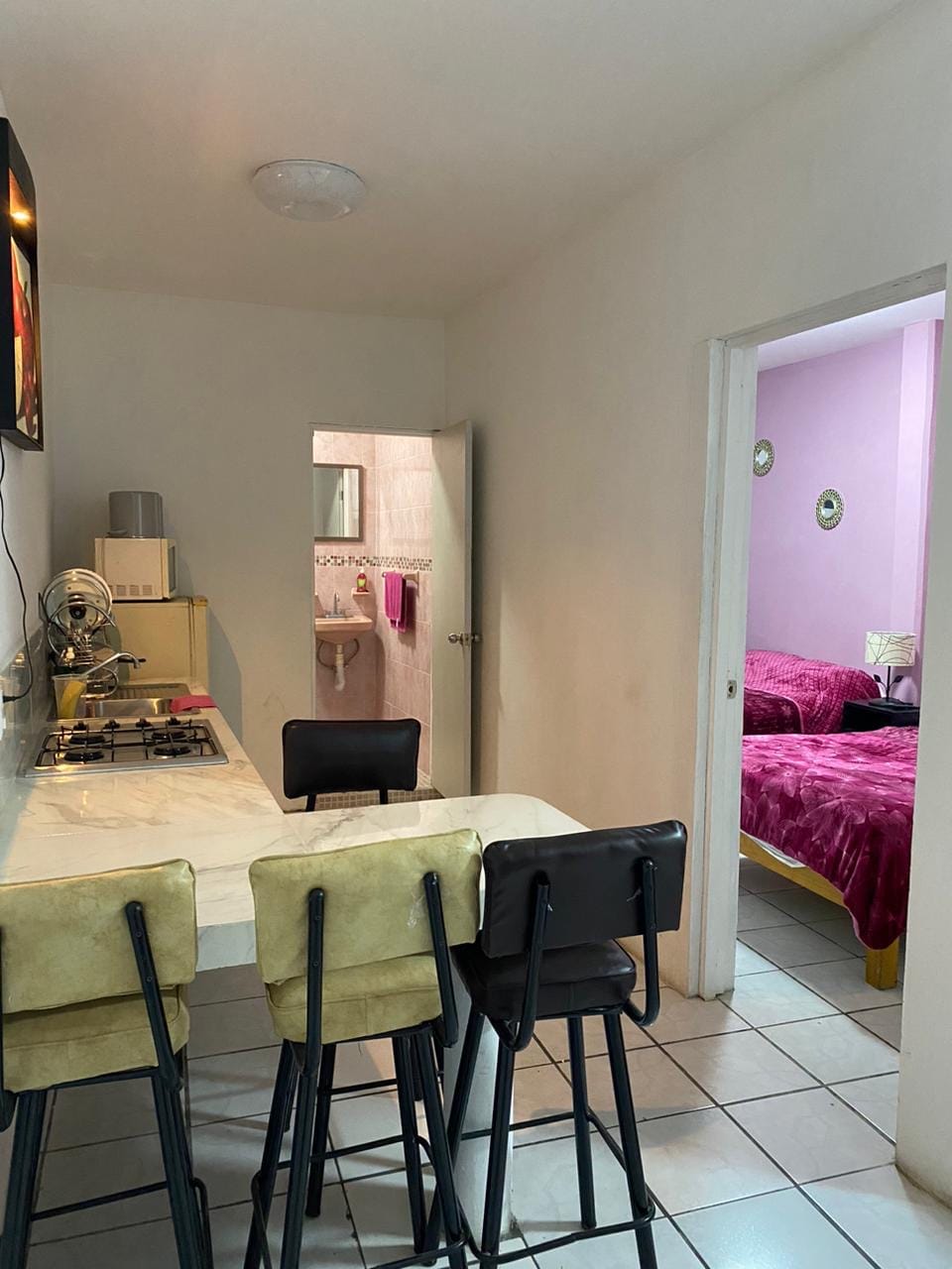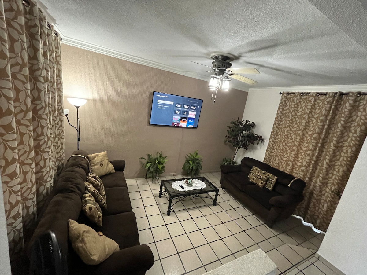 Nuevo departamento minimalista que tiene todo lo que un viajero necesita para pasar una cómoda noche, nos encontramos en buena ubicación ya que nos encontramos en una de las calles que conectan varias colonias, enfrente de nosotros tenemos una tienda OXXO, alado de nosotros un dentista y la parada del autobús, se sentirán como en casa y las facilidades de transporte son muchas.