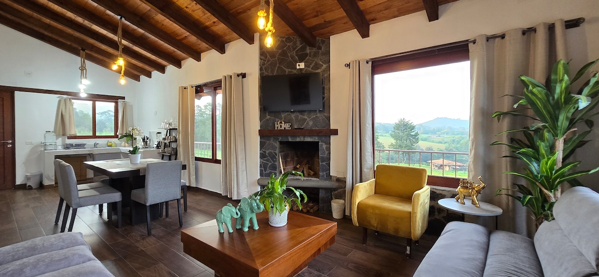 Estamos ubicados a 5 minutos del centro de Zacatlan, con vista espectacular y servicios necesarios para brindarle una estancia cómoda !Cabañas nuevas, techo de madera, acabados en piedra, con un toque de lujo. Cada cabaña cuenta con habitación privada con cama king size, dvd, sky, plasma, sala con chimenea, sofa cama queen size, u 24hrs, carga de leña de cortesía y estamos ubicados a 10 min del centro de nuestro Pueblo Mágico número 1, Zacatlan de las Manzanas , 1 km de las cascadas de San Pedro a lado de la Barranca de los jilgeros