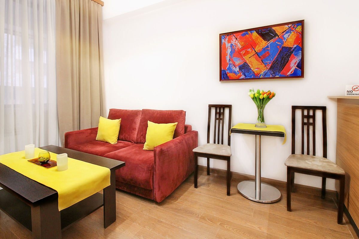 Surround yourself with Art, Sunlight and Comfort and of course the Luxary of the Best Location during your stay in Yerevan. You will be staying in the building which was a specially built for the Central Committee of the Communist Party of the Soviet Union in Armenia just in front of the gorgeous Composer's House and the Painter's House. Allow yourself to walk in the city to discover the neighbourhoods, cultural places, Enjoy the Best Restaurants and Pubs, and walk to your quite home in Yerevan!