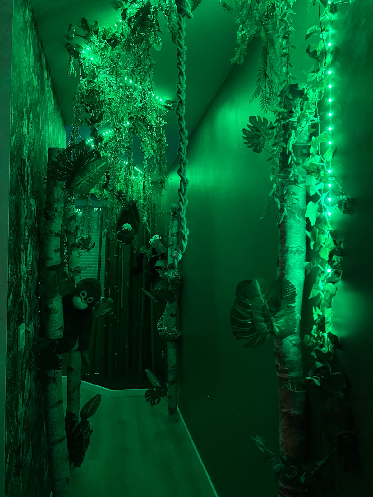 Découvrez La Suite Oasis, un loft unique en son genre pour une escapade en duo inoubliable. Au 1er étage d’une maison de ville, plongez dans une ambiance jungle avec un parcours sensoriel captivant : appréciez mur en roche, traversez un couloir immersif bordé de lianes et animaux exotiques. Profitez de la baignoire balnéo avec ambiance sonore, d'une mezzanine avec lit Queen-size en bambou et filet détente. Un espace atypique, où chaque détail vous transporte au cœur d’une oasis de bien-être.