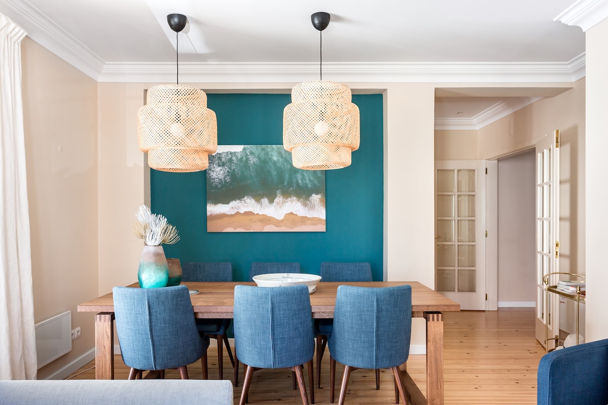 A Casa da Jo is a beautiful welcoming apartment located in the center of Cascais, has 144 sq meter and a wide courtyard for children to play but also for adults to enjoy. 9 minutes walk from the beach, the historic center and from other amenities, it is perfect for families and groups of friends that wants a beautiful home for a few days or weeks away from home.