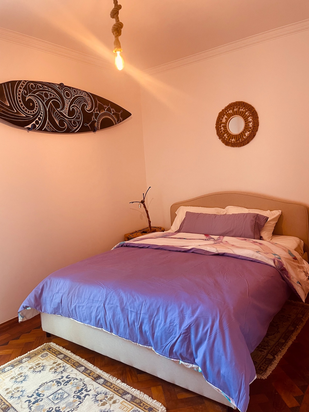 Home far away from home, a space full of art, recycling and love with a team to welcome and help you 24/7, comon spaces indoor and outdoor to make friends and chill. FREE YOGA LESSONS :D SURF LESSONS WITH DISCOUNT ;) MASSAGES, TRIPS AND MORE... BREAKFAST SIMPLE or DELUXE (not included at the price) with vegan options 15 min walking to the beach and city center 20 min by car to Sintra 30 min by car to Lisbon Let´s raise the limits and be free! Até já :)
