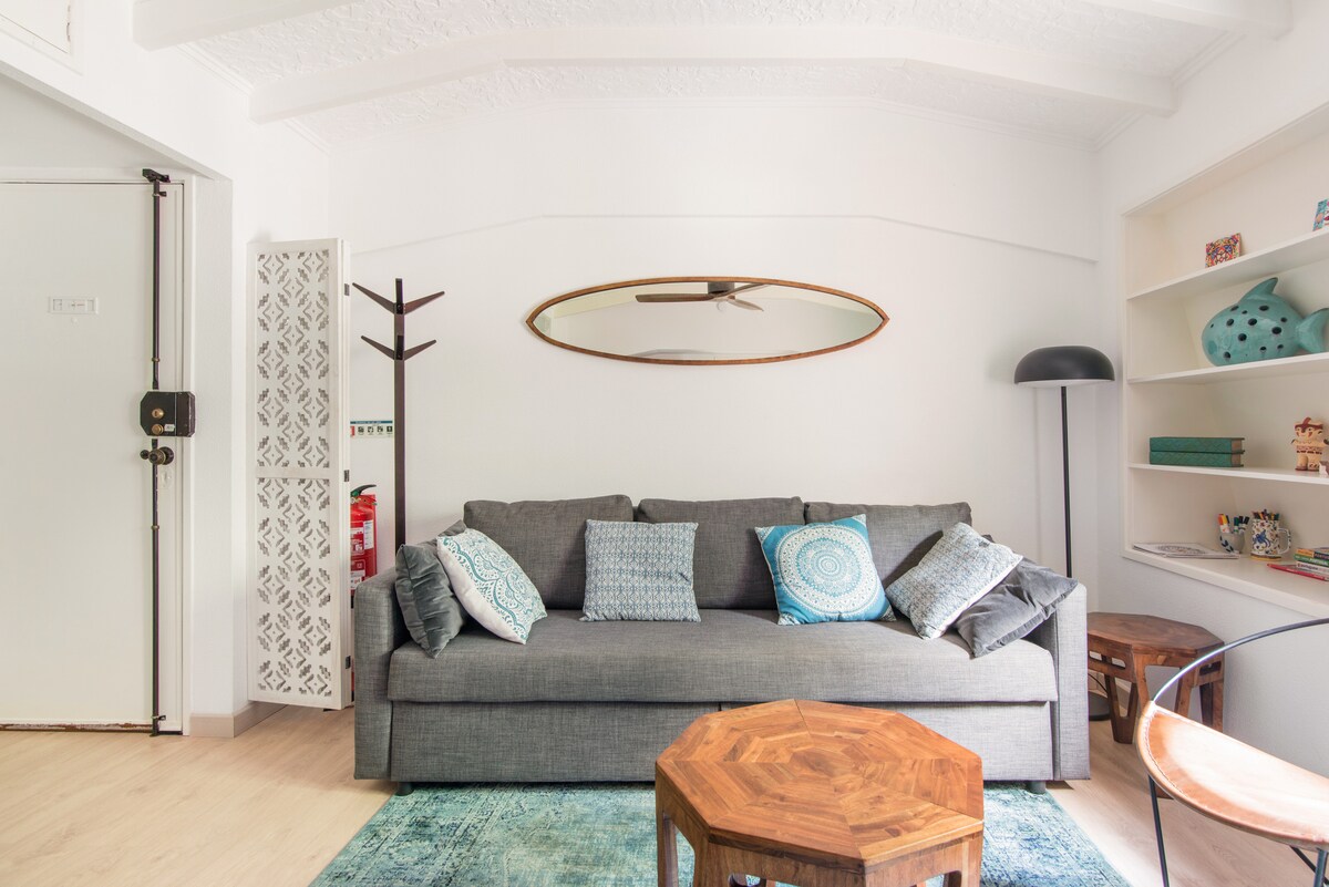 Step through the stunning tiled hallway and sink into the leather lounge chair under whitewashed beams in this beautiful coastal one bedroom apartment in Cascais. Located in the historic district, your bedroom overlooks a local park, where you will sleep soundly in this beautifully renovated apartment. With Portuguese art on the walls, and homemade crafts in the built- in bookshelves, you will quickly realize why this apartment is called Casa Paraiso! 96582/AL Located in a quiet neighborhood in the historic district of Cascais, you can walk to everything in under 10-minutes - downtown, numerous neighborhood restaurants, 2 beaches, the direct train line to Lisbon (40 min), the stunning coastal bike/walk path, a gorgeous spacious park and shopping. Everything is at your fingertips. At the end of the day you'll come home to a quiet neighborhood apartment where your bedroom looks out over a small local park. It doesn't get any better!