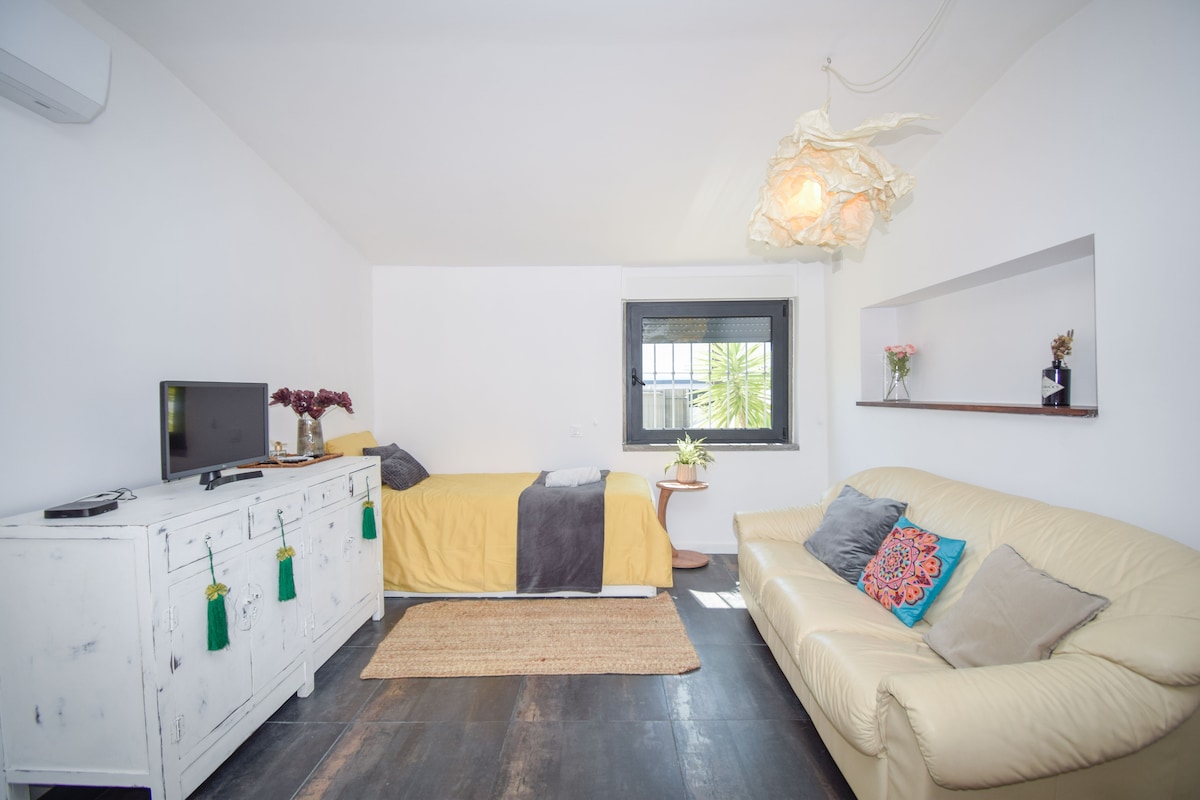 Escape the city and enjoy a peaceful getaway in this cozy open space apartment for up to 6 guests, on a historic farm with a swimming pool. Surrounded by nature and animals, it’s perfect for couples, families, or remote workers. Kids can explore outdoors while adults relax or work. Ideally located between Lisbon and Sintra, it’s the perfect base to explore both the city and the coast, while returning each day to fresh air and tranquility.