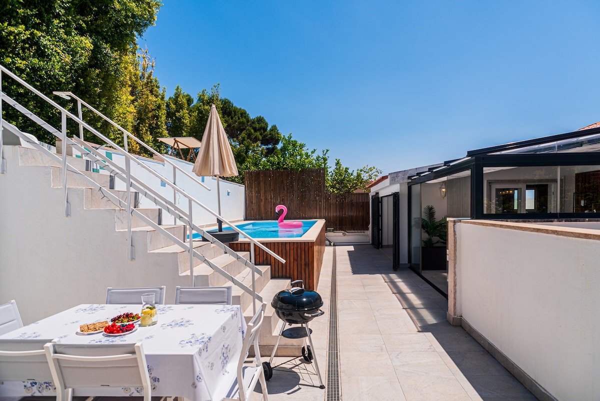 Discover the best of Cascais and the surrounding areas in this luxury townhouse with stunning panoramic views from the terrace. Spacious, elegant, and fully equipped, it's ideal for families and large groups seeking comfort, privacy, and a sophisticated touch. Private and heated rooftop pool, free parking with electric charging, and touring bikes are just some of the many reasons you'll love discovering this stunning gem in Cascais, Light Haus CONDO.