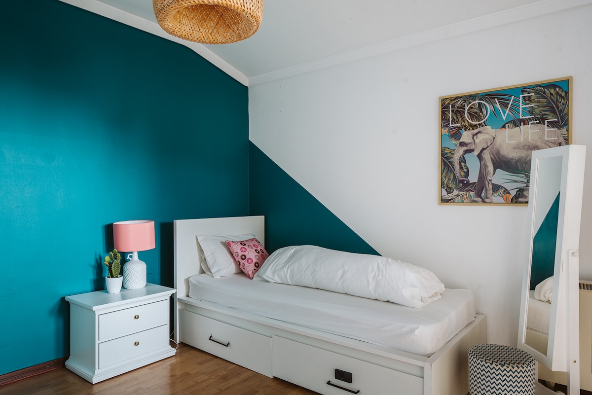 Cosy double room in residential area of Cascais with garden view! Common spcaes available next door to cook, socialize with other guests or relax at the terrace. Shared bathroom is brand new and will be only shared with 2 other rooms in the building. It's perfect for couples searching for good vibes staycation in Cascais. No pets allowed.