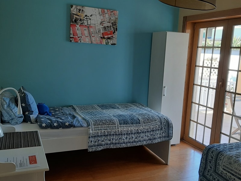 Quarto com casa de banho privativa. Quarto com muita luz e vista desafogada maravilhosa e de mar. Virado a poente! Inserido em apartamento onde vive família de 4 pessoas. Família calma e ocupada, estando muitas vezes ausente. Acesso ao quarto pela cozinha. Cozinha disponível com todos utensílios. Ideal para estudantes por períodos de um a quatro meses. Prédio sem elevador!