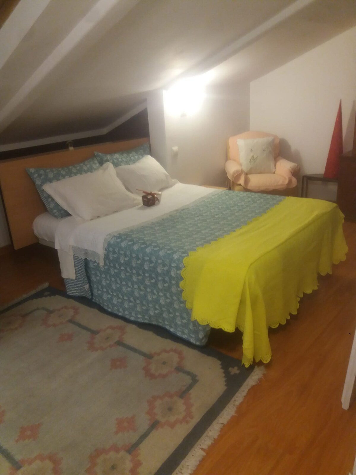 O apartamento está num prédio de 100 anos de idade, no Cascais antigo. O apartamento consiste num sotão transformado, com chão e teto de madeira. Tem um salão cheio de luz, dois simpáticos quartos, uma casa de banho com pequena banheira, uma cozinha totalmente equipada, e um terraço com vista de mar ao longe. Apesar de se encontrar perto do centro de Cascais (com restaurantes, bares e supermercado na zona) este apartamento é extremamente sossegado. Praia, golf, tenis, cavalos, vela, mergulho, passeios na serra, passeios no mar, casino, museus, musica ao vivo, castelos, palácios, um centro cultural, são muitas das actividades de que podem disfrutar nesta zona. Estou certo de que vão ter uma bela estadia. Quanto a transportes públicos, o comboio para Lisboa e o bus para Sintra apanham-se a apenas 500 metros do apartamento. O Central Charming Attic, é um espaço muito acolhedor, para apreciadores onde se vai sentir bem.
