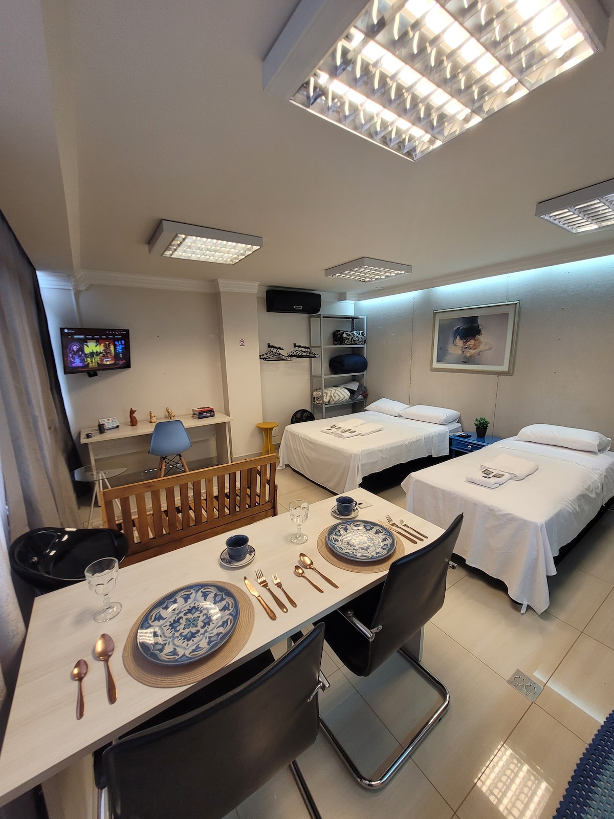 Descubra o conforto, a modernidade e a conveniência. Oferecemos uma combinação perfeita de tecnologia e estilo. Situado no centro da cidade, você estará ao lado dos melhores restaurantes, lojas, e atrações culturais. Explore tudo o que a cidade tem a oferecer com a comodidade de estar no epicentro da ação. Venha viver uma experiência única em nosso apartamento, onde cada detalhe foi pensado para proporcionar o máximo de conforto e praticidade. Reserve agora e tenha uma estadia inesquecível.