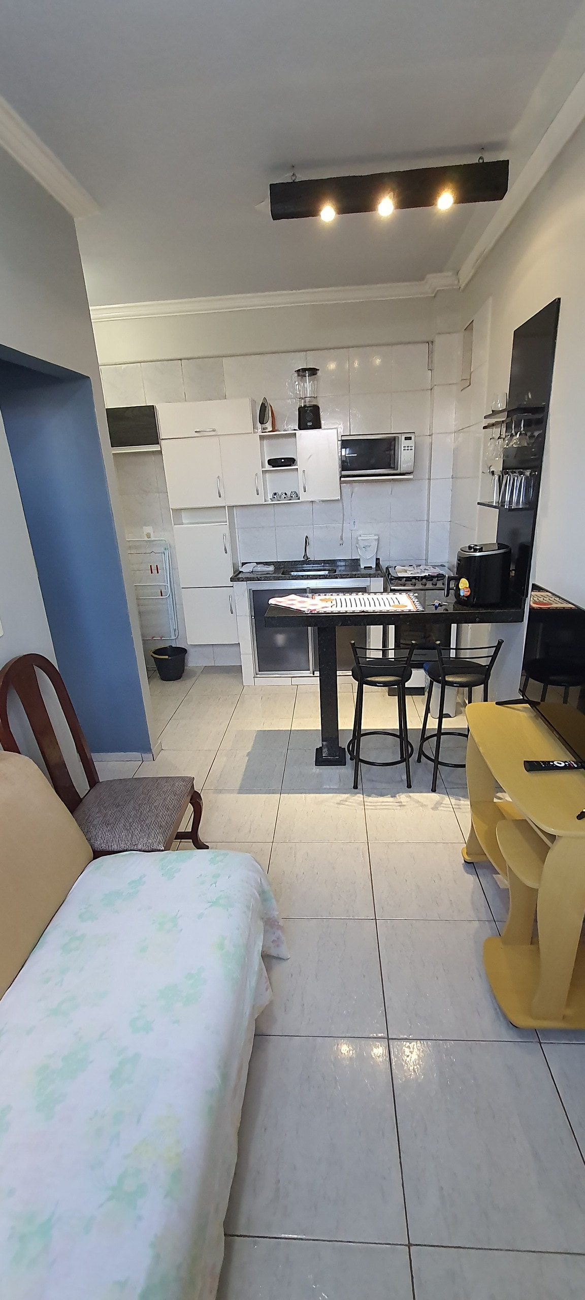 Flat central, Apt funcional quarto, cozinha e banheiro, mobiliado com cama de casal, TV basica, Internet, ar condicionado, geladeira, fogão, microondas, forno elétrico, máquina de lavar, utensílios, roupas de cama e de banho, tapetes; Garagem coberta;