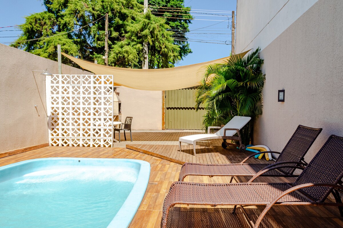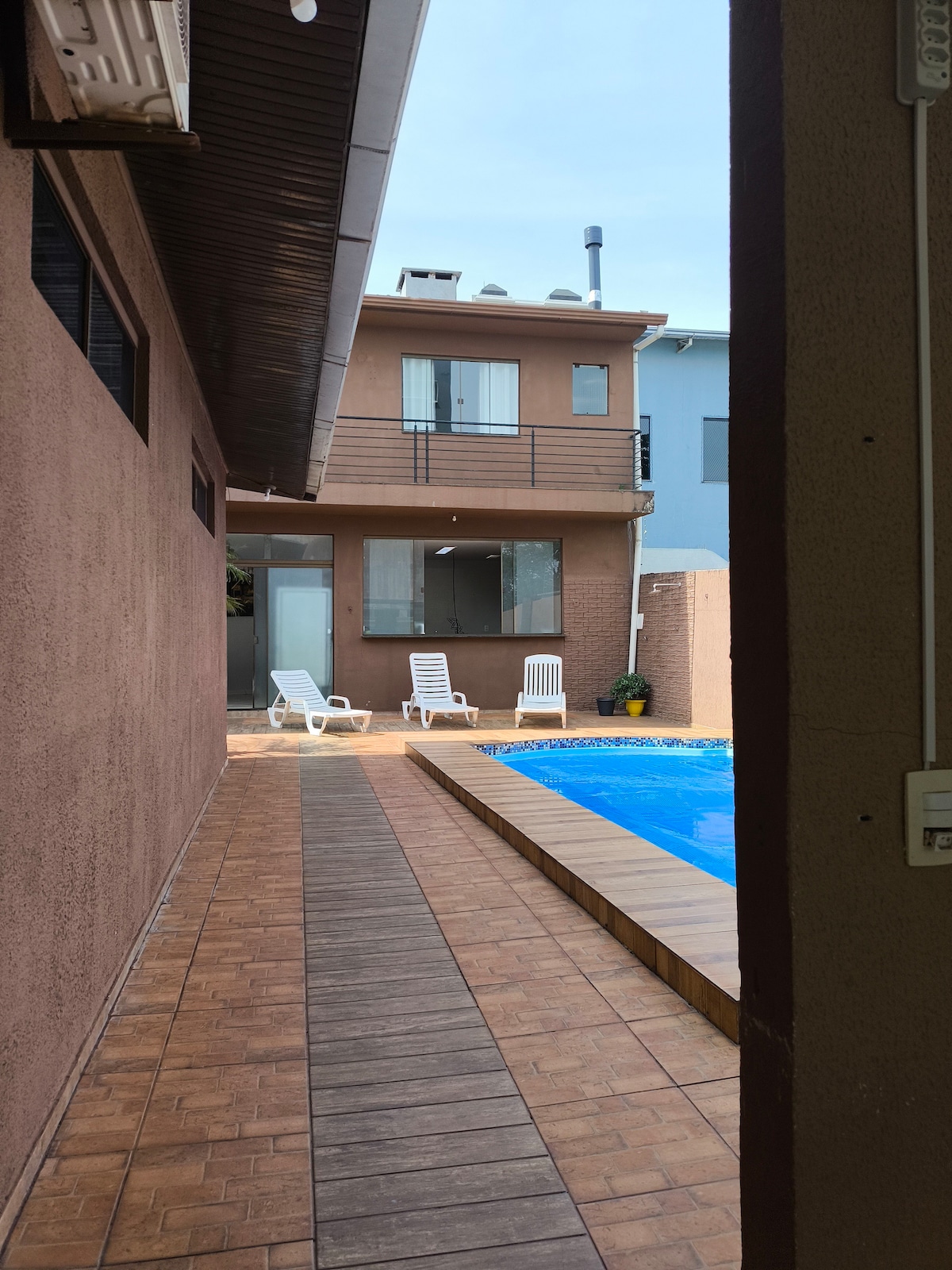 Sobrado em área nobre de Cascavel, central 1 suíte e 2 quartos (ar condicionado e tv em todos) Casa toda equipada Área gourmet completa Piscina aquecida (nos meses de junho, julho e agosto o aquecedor da piscina fica desligado, por conta das baixas temperaturas na cidade, por se tratar de uma piscina aquecida e não térmica, a temperatura externa não pode estar tão baixa).