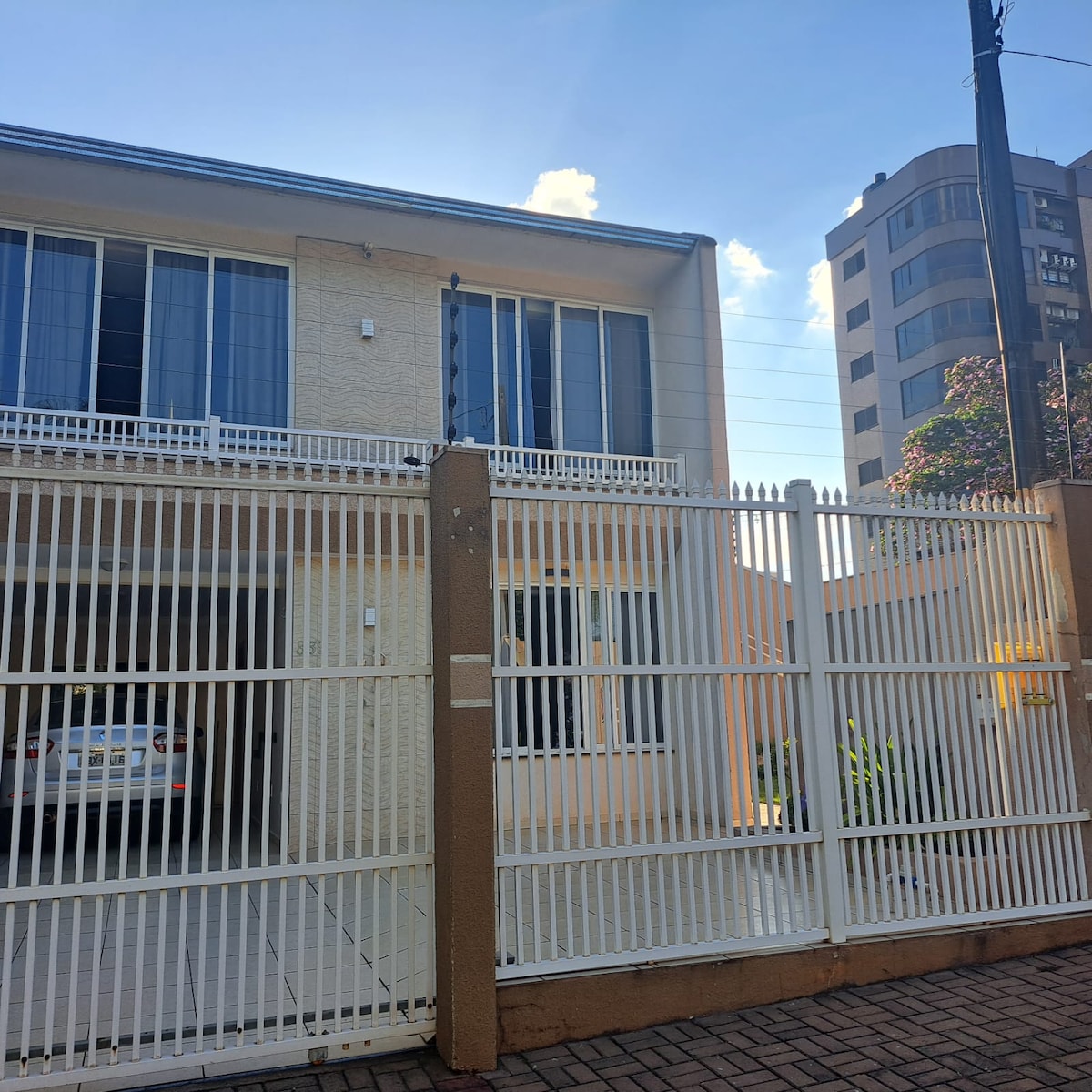 Este sobrado fica à 23 minutos do SHOW RURAL COOPAVEL Esta acomodação elegante é perfeita para viagens em grupo, seja a lazer ou a trabalho. Sobrado contém 01 suíte, 02 quartos 02 Cozinhas 02 Salas Edícula contem: Churrasqueira 01 quarto com banheiro Garagem para 03 carros médios 04 Quartos Sobrado de esquina com monitoramento Próximo ao Burger king, 03 quadras da avenida Brasil.