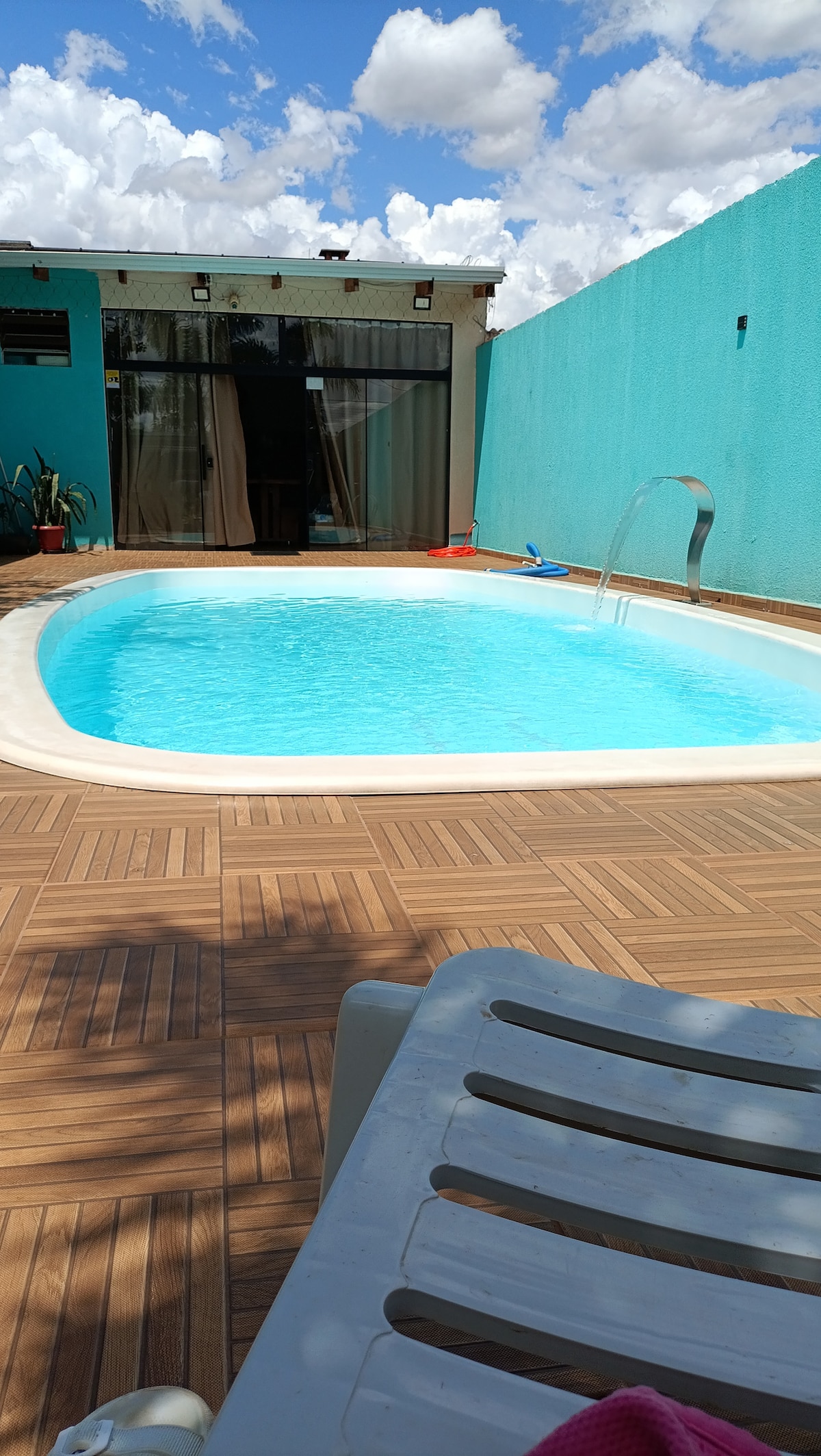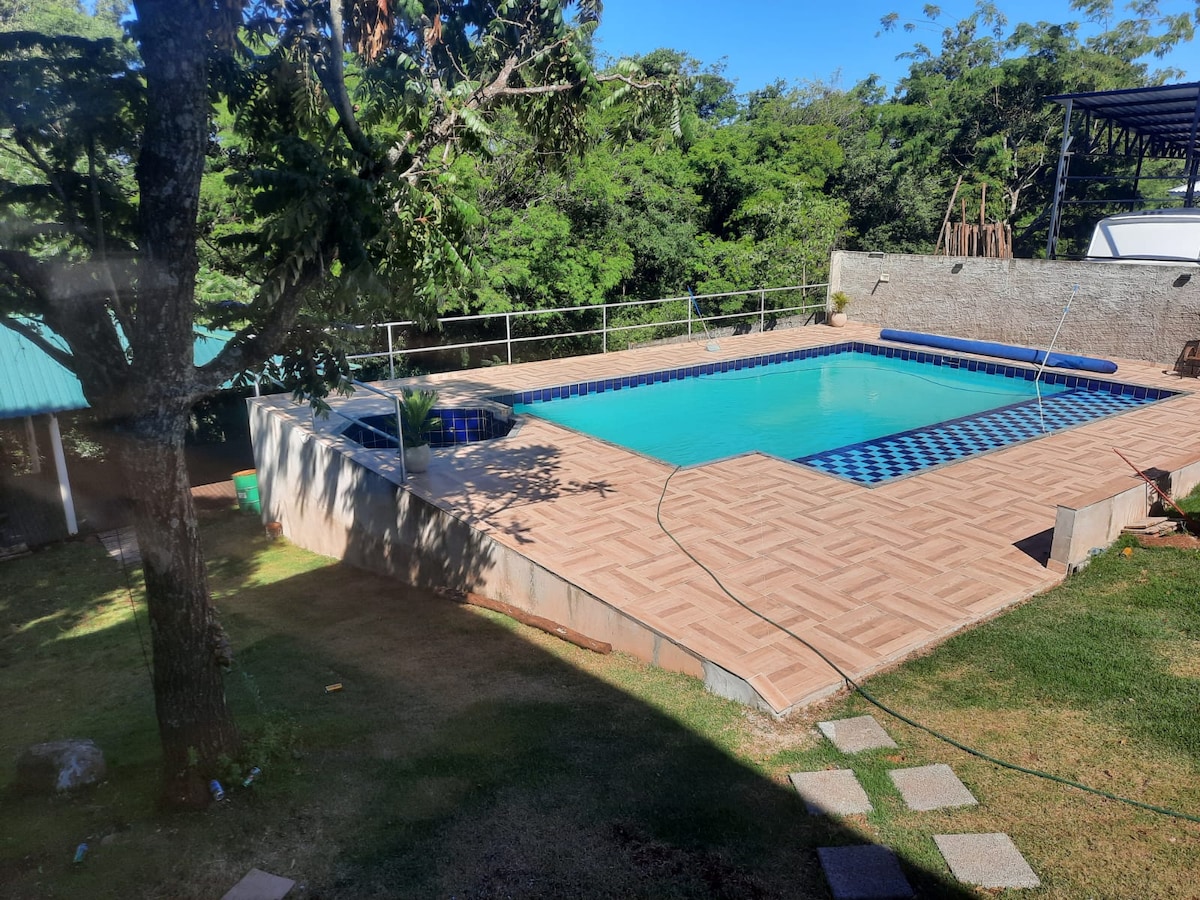 O Nosso espaço é um lugar familiar de lazer ideal para descansar! conta com uma bela piscina com aquecimento solar, espreguiçadeiras, mesas, cadeiras e guarda-sóis. Área gourmet com churrasqueira com todos utensílios de churrasco. cozinha completa com utensílios. Bancada em granito com banquetas altas, mesas bistrô com banquetas em madeira. Mesa de sinuca, Tv 65 polegadas com streaming. sofá para seu descanso. Lugar tranquilo e sossegado.