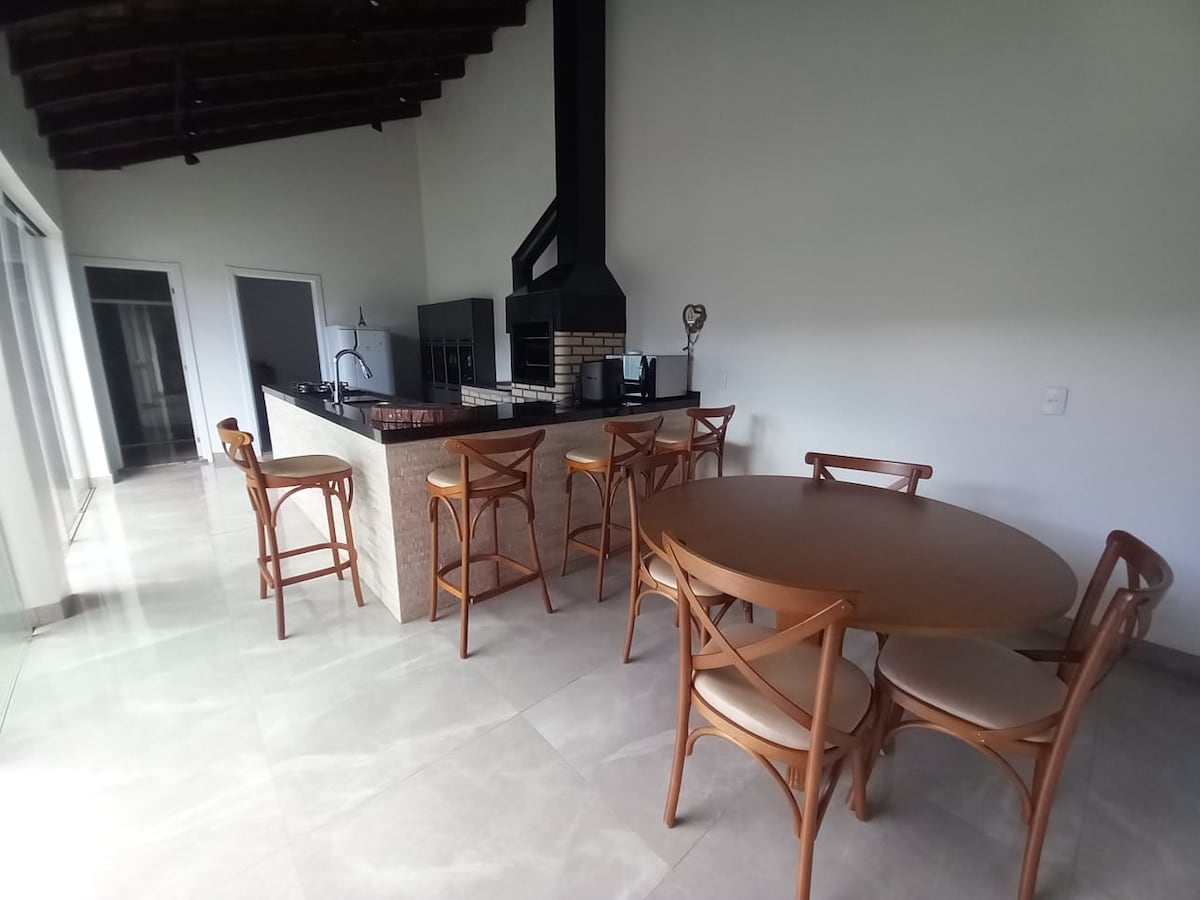 CASA totalmente mobiliada, com todos eletrodomésticos para uso, garagem ampla para 4 veiculos, area externa ampla, area de churrasqueira, uma suíte mais 3 quartos. Banheiro da suíte com jacuzzi de 400 litros, e aquecimento solar. Outro banheiro com chuveiro elétrico e/ ou aq. Solar, e mais um lavabo, cozinha toda equipada, sala com lareira, sala superior com TV , quarto anexo e varanda externa. Lavanderia equipada. Churrasqueira grande.