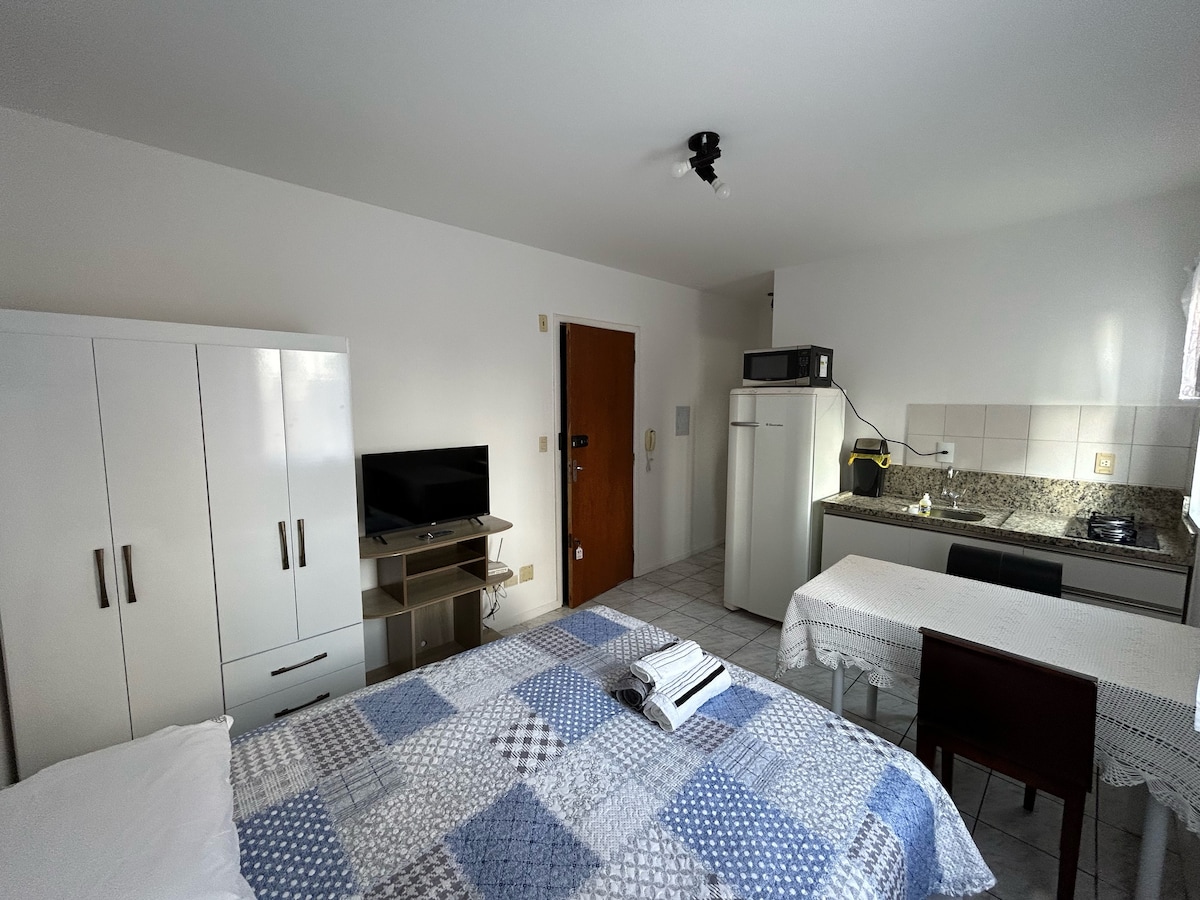 Estúdio totalmente mobiliado que oferece as seguintes comodidades aos seus hospedes: -Ar condicionado -Roupas de cama e banho completos. • Smart TV; • Geladeira; • Micro-ondas; • Cooktop A gás • Ferro de Passar • Utensílios de cozinha.