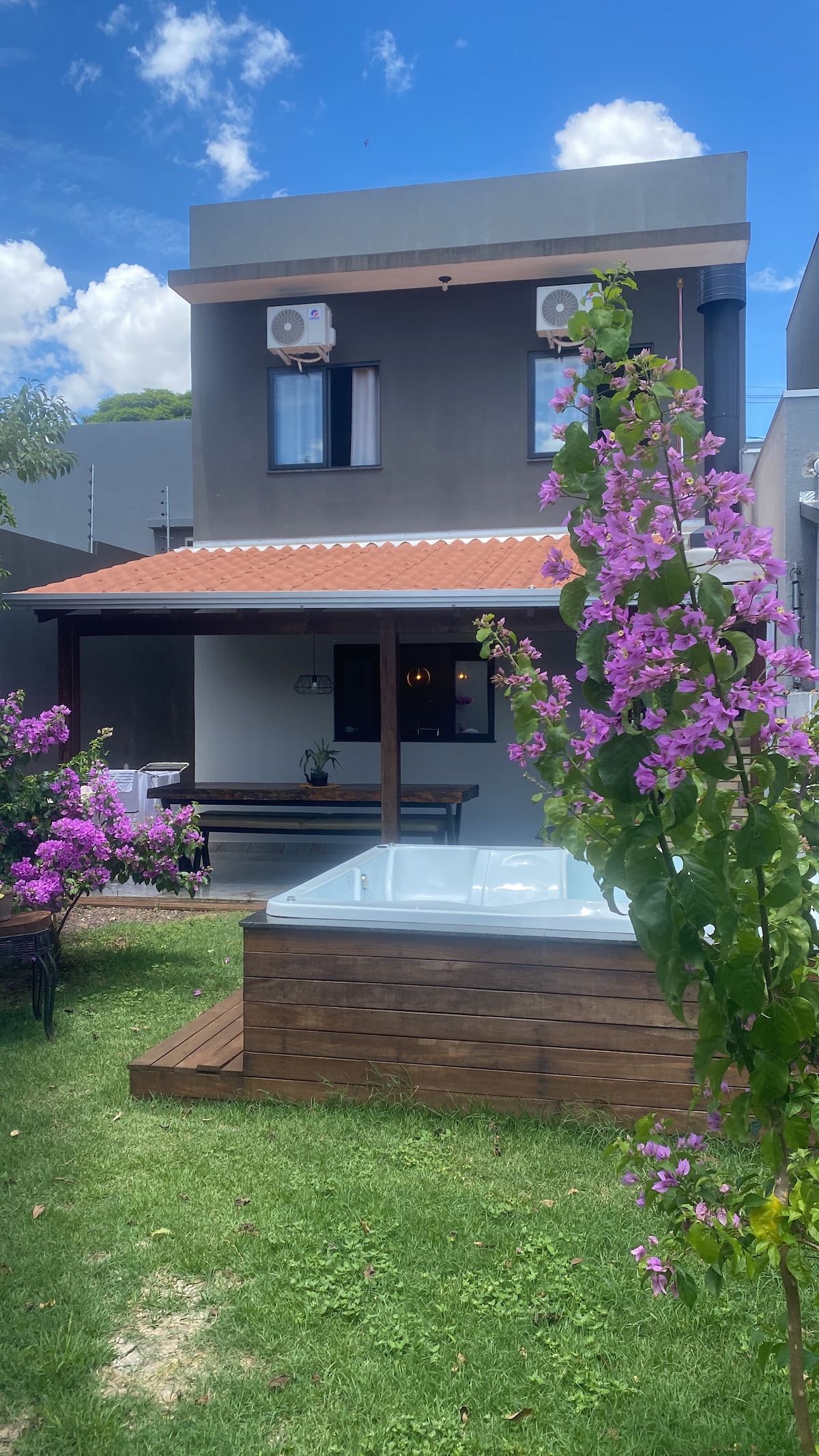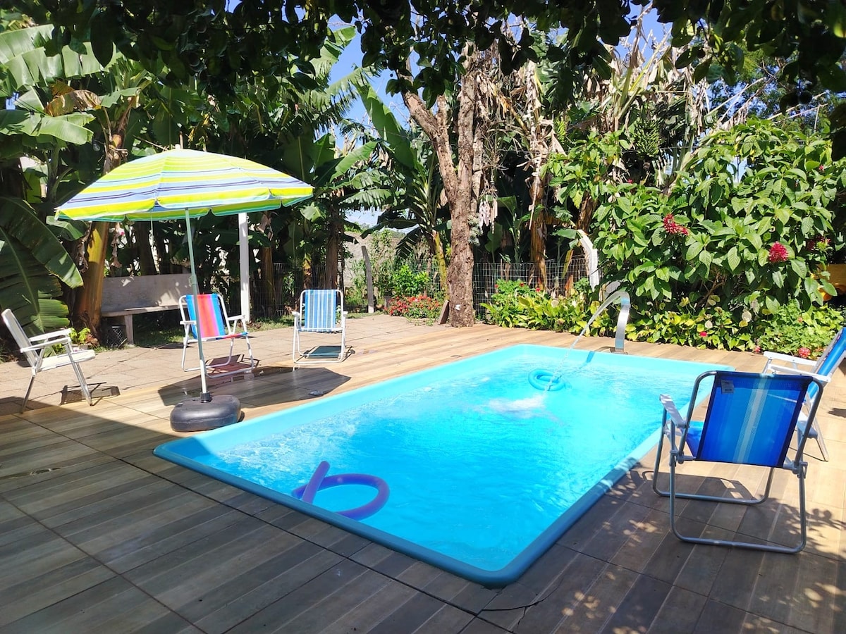 O Nosso espaço é um lugar familiar de lazer ideal para descansar! conta com uma bela piscina com aquecimento solar, espreguiçadeiras, mesas, cadeiras e guarda-sóis. Área gourmet com churrasqueira com todos utensílios de churrasco. cozinha completa com utensílios. Bancada em granito com banquetas altas, mesas bistrô com banquetas em madeira. Mesa de sinuca, Tv 65 polegadas com streaming. sofá para seu descanso. Lugar tranquilo e sossegado.