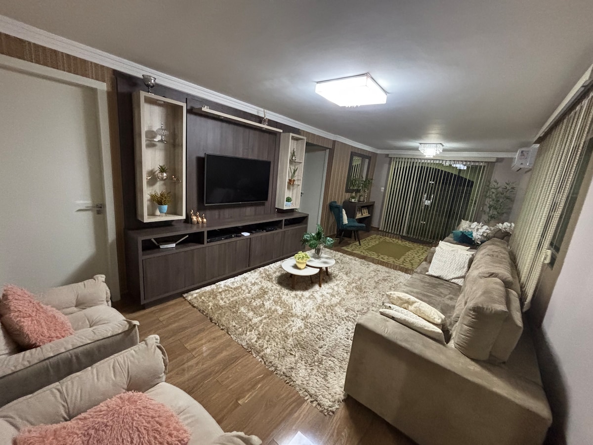Incredible accommodation, 3 large and comfortable suites in a beautiful triplex; wooded neighborhood with walking park. You will wake up to birdsong and a beautiful view of the riparian forest of the municipal lake. Easy access to restaurants, supermarkets, shopping malls, the center and BR 277, you can choose by car, bus, Uber or on foot. There are 750m² and a garage for 10 cars. Integrated swimming pool and common area. Full kitchen with barbecue and utensils. Small breakfast can be arranged.