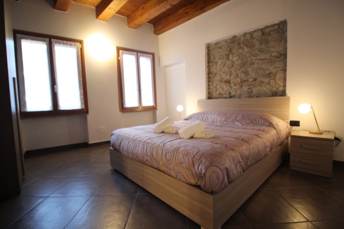 Gaze over stunning 180-degree views of islands on Lago Maggiore from the expansive, floor-to-ceiling windows of this lovely, 230-year-old rustic stone villa. Antique furnishings perfectly complement the historic architecture. The house is on 3 floors so a fair bit of walking up and down stairs is required. The main bedroom is on the upper floor and the 2nd bedroom (two single beds) and bathroom on the lowest floor. Ideal for couples and families but not for the elderly or groups of 4 adults.