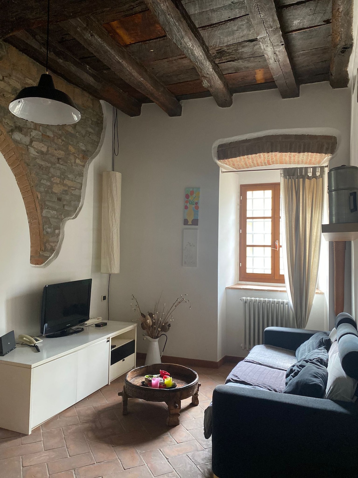 Bilocale nel borgo, il centro storico di Pontassieve, al 2° piano di un piccolo condominio senza ascensore, a 10 minuti a piedi dalla stazione ferroviaria e bus con frequenti spostamenti per Firenze (23 minuti), Mugello, Consuma, Vallombrosa e il lussuoso Outlet The Mall. Composto da 1 camera con letto singolo reclinabile, tv, ampio armadio e 2 finestre con vista sul fiume e sul ponte Mediceo, 1 cucina-soggiorno con google cast tv, divano trasformabile in letto singolo e 1 bagno con doccia.
