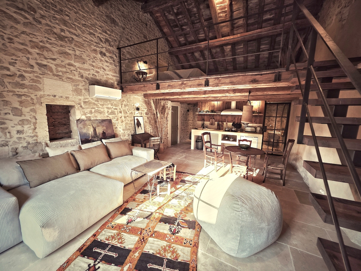 A beautiful stone house at the Bastide de La Chapelle, perched high above one of France's oldest villages. Renovated in 2023, with contemporary charm and luxe furnishings, a two bedroom two ensuite destination for a relaxing, special stay in Provence. Surrounded by the Luberon mountains, with exceptional views below. A small grotto pool awaits as well as a private terrace, garden, and BBQ. Fast fibre optic WiFi if you 'd like to work a little. Can be booked with La Chapelle ID2779429