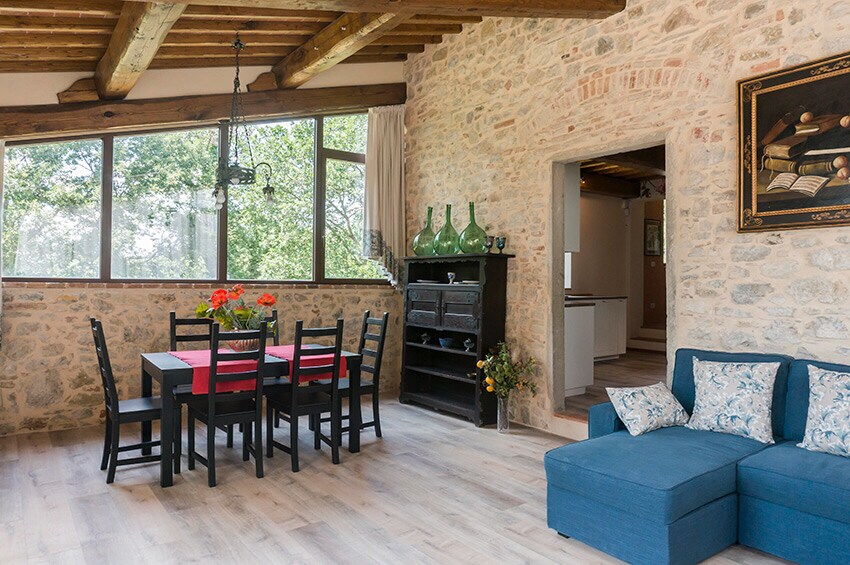 Spend a holiday in the heart of the Tuscan countryside in this cozy stone house with terracotta floors and beamed ceilings in solid oak, furnished with paintings of author , equipped with all comforts. Enjoy yourself by swimming in the large infinity pool (18m X 9m, open from May 1st to October 15th for guests of Stone house use only) or relax in an armchair under the loggia, tasting a glass of Chianti wine in front of the rolling hills of vineyards, olive groves, woods and medieval villages.